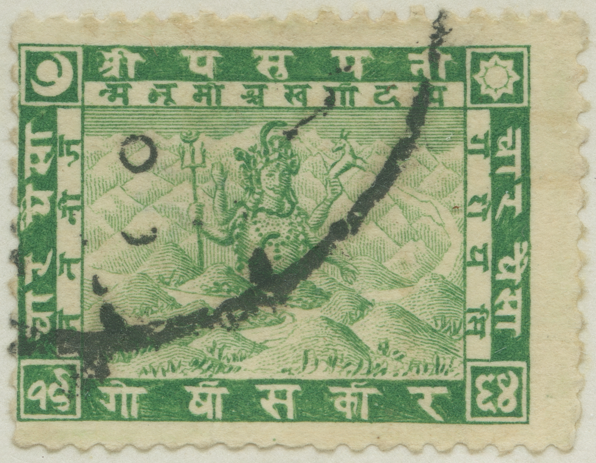 Frimärke från Nepal, 1907. Motiv av Guden Siva Mahadeva