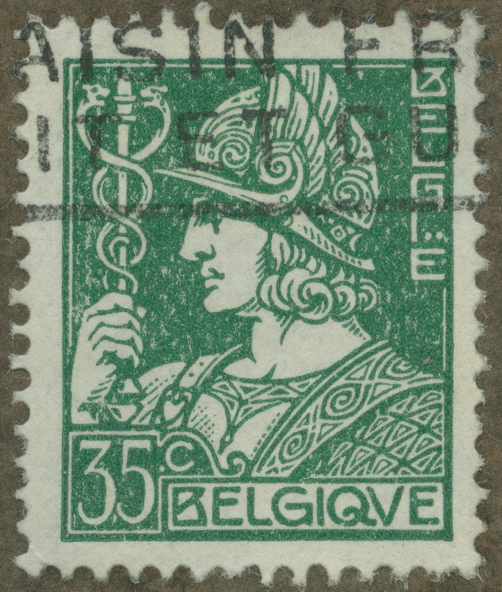 Frimärke från Belgien, 1932. Motiv av Mercurius Symbol för handel