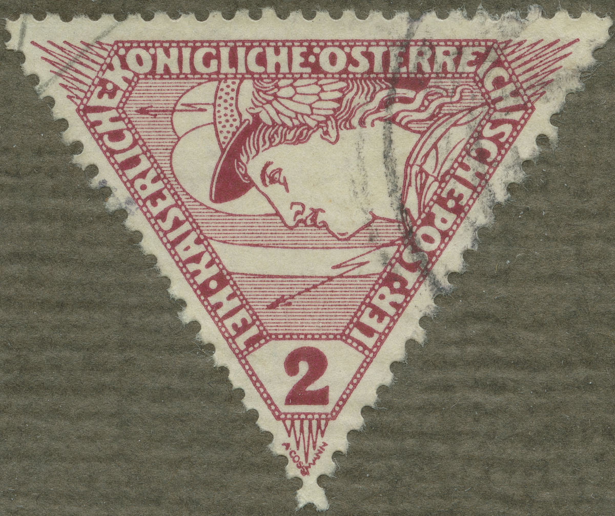 Frimärke från Österrike, 1916. Motiv av Österrikisk symbol för tidningsmeddelanden, "Merkurius"