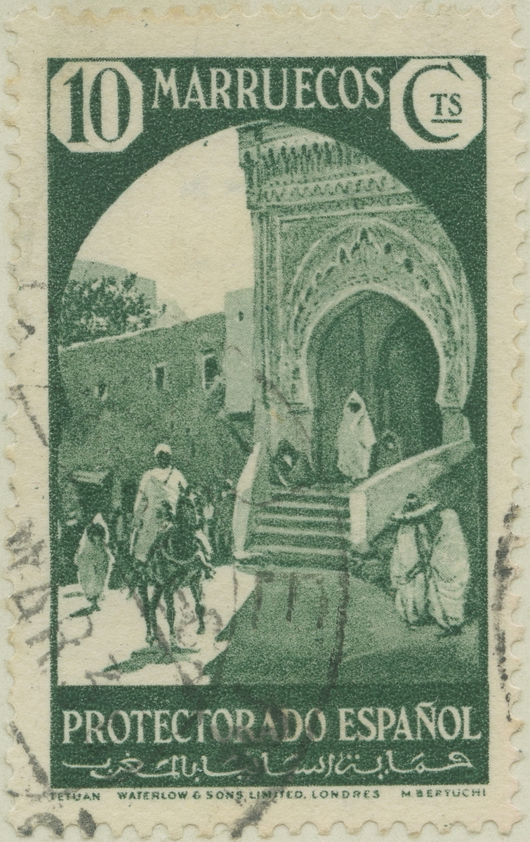 Frimärke från Spanska Marocko, 1933. Motiv av Gatuscen från staden Tetuán.