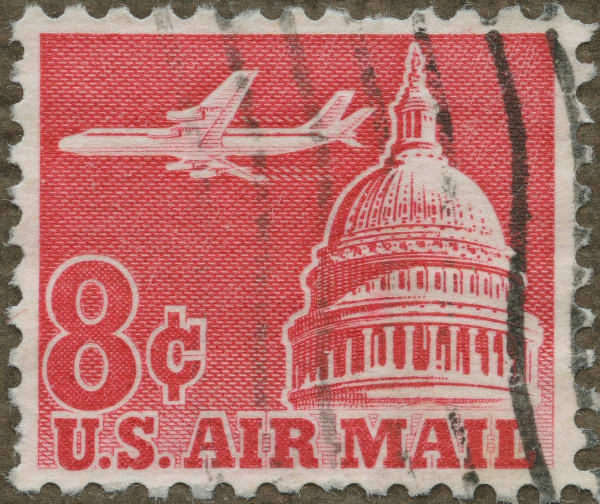 Frimärke från U.S.A., 1962. Motiv av Kapitoliet i Washington, District of Columbia, USA. -Flygpost märke-