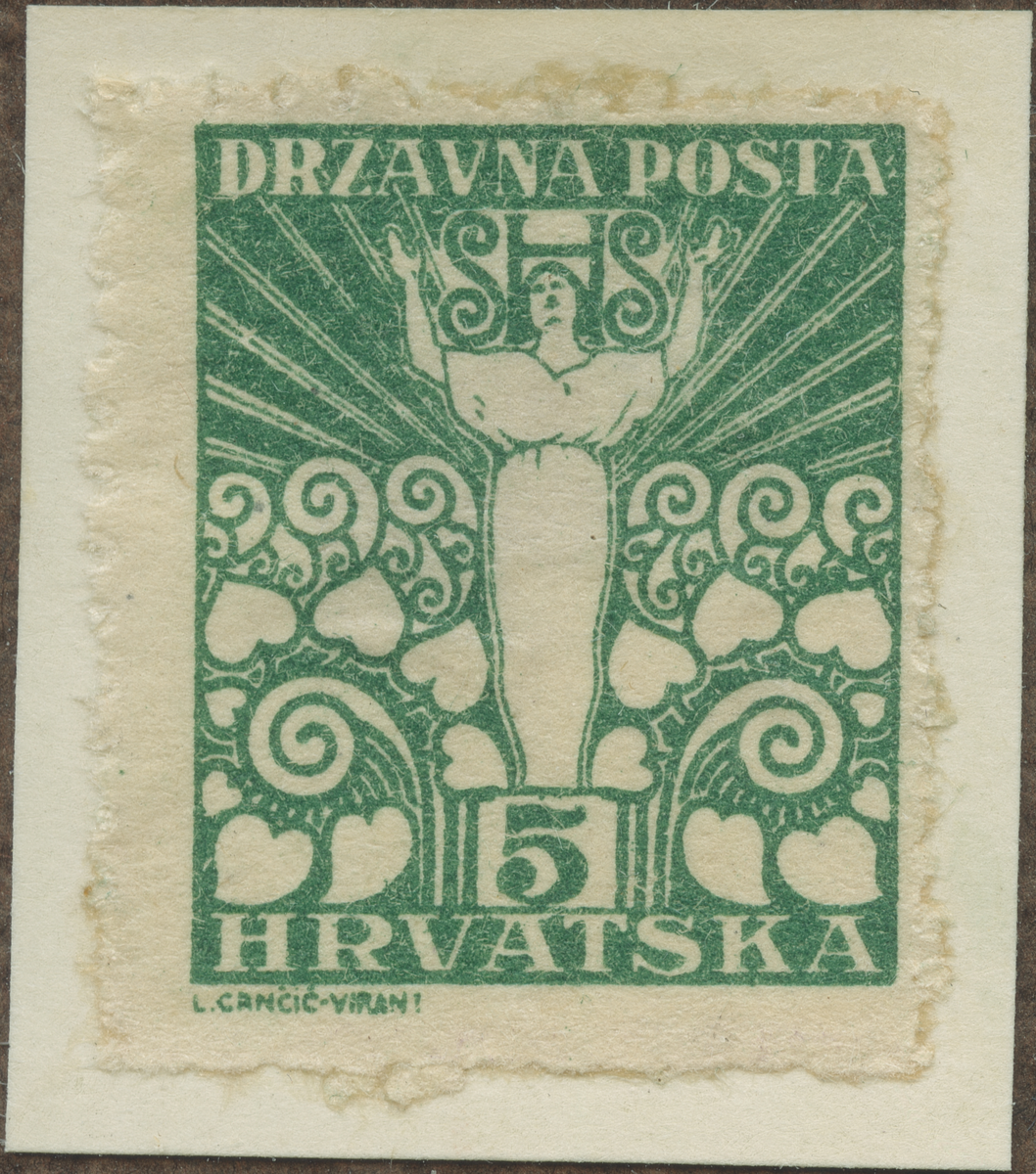 Frimärke från Hrvatska/ Kroatien. Från S.H.S. Kungadömet av Serber, Kroater och Slovener1919. Motiv av Freds Ängel