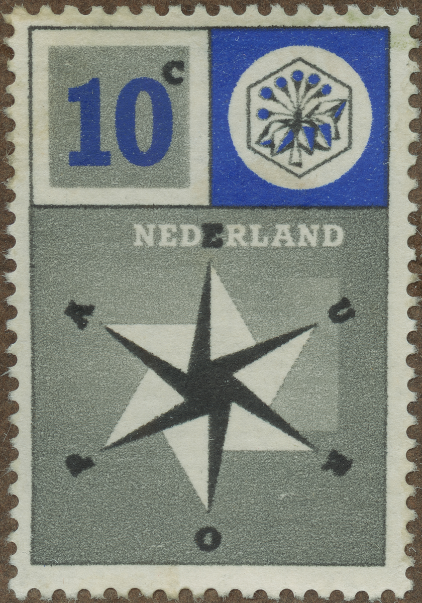 Frimärke från Nederländerna, 1957. Motiv av Sexuddig stjärna EUROPA