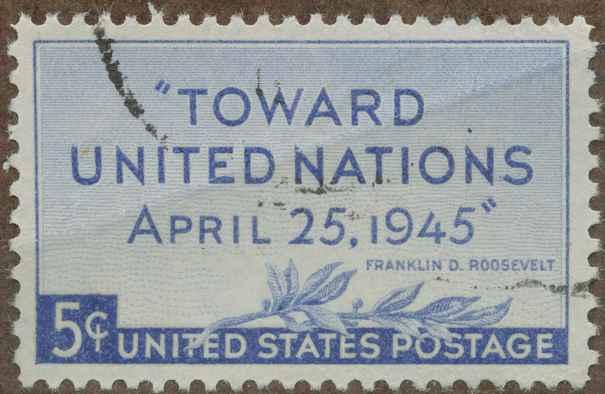 Frimärke från U.S.A., 1945. Motiv av Minne om De Förenade Nationernas Konferens i San Fransisco d. 25 april 1945.