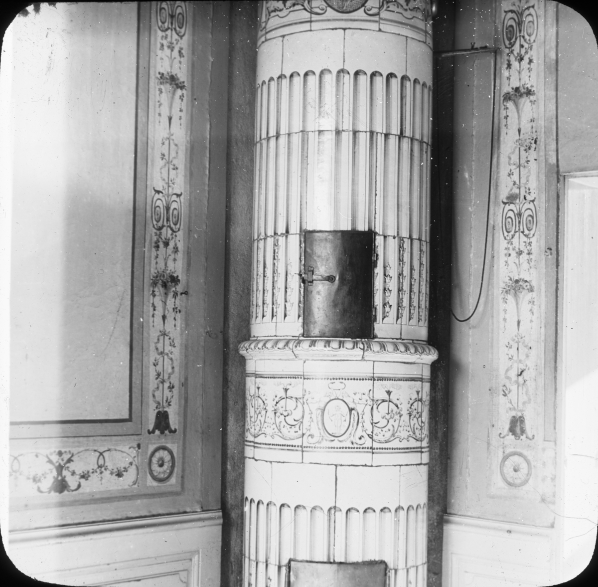 Skioptikonbild med motiv av kakelugn.