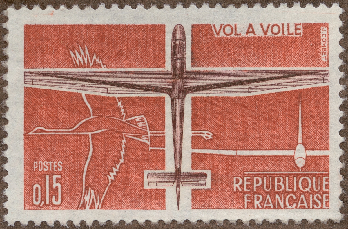 Frimärke från Frankrike, 1962. Motiv av Stiliserade flygplans modeller--- Stork: symbol för flygning "-Propaganda för turistresor med flyg-"