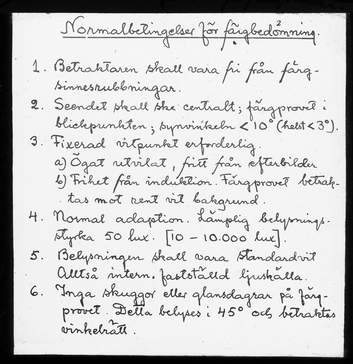 Skioptikonbild från Institutionen för fotografi vid Kungliga Tekniska Högskolan. Använd av professor Helmer Bäckström som föreläsningsmaterial. Bäckström var Sveriges första professor i fotografi vid Kungliga Tekniska Högskolan i Stockholm 1948-1958.