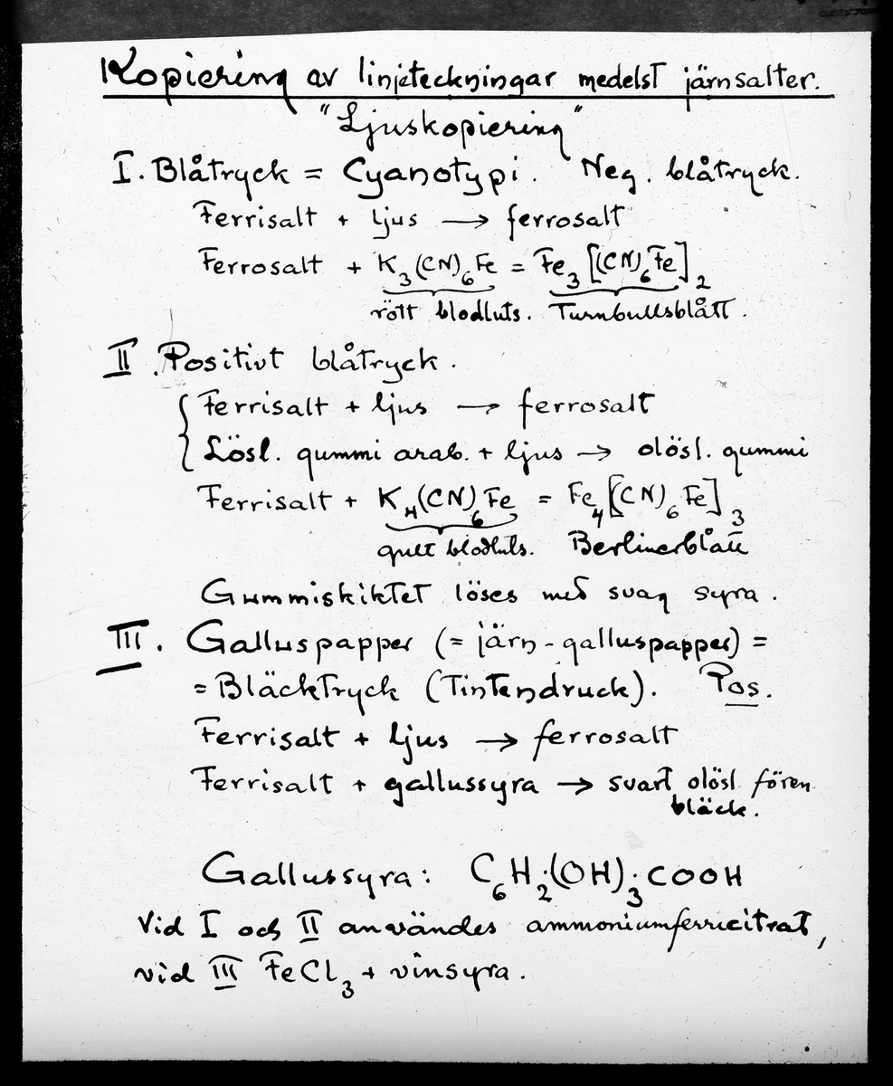 Beskrivning av kopiering av linjeteckningar medelst järnsalter.
