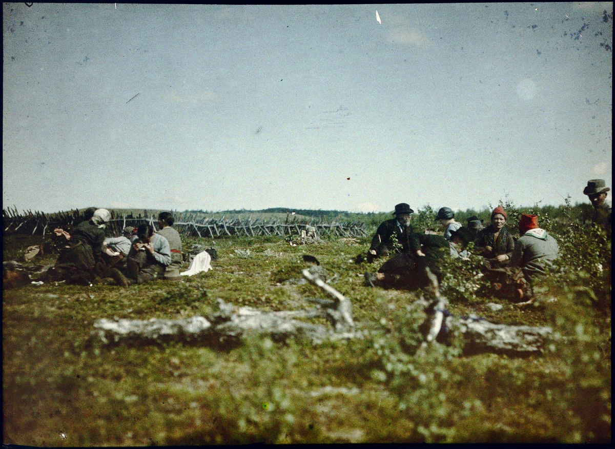 Agfa-autokrom. Paus bland samerna efter renskiljningen. Lappland.