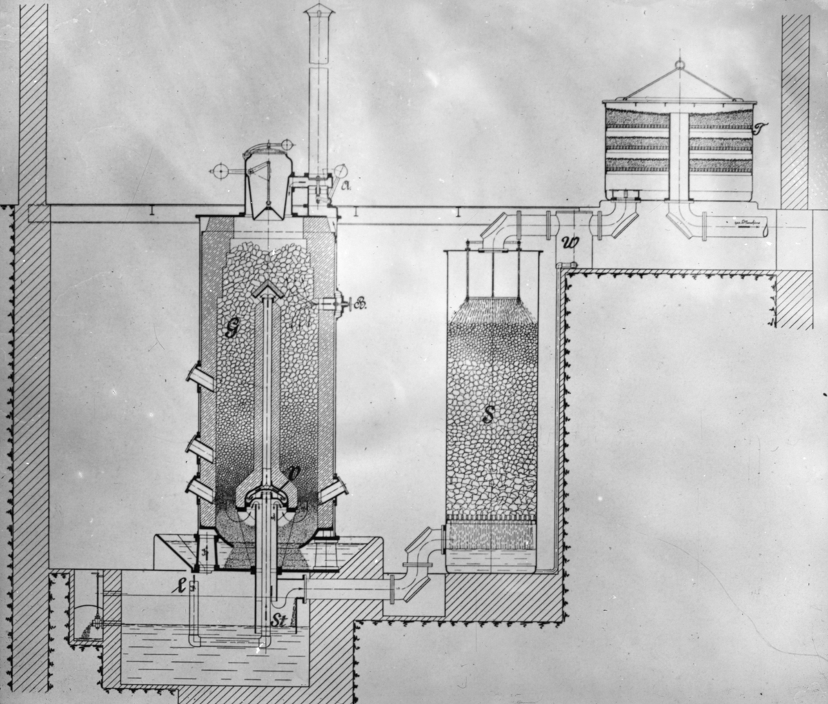 Titel: Skioptikonbild. Ritning av torveldingsugn.