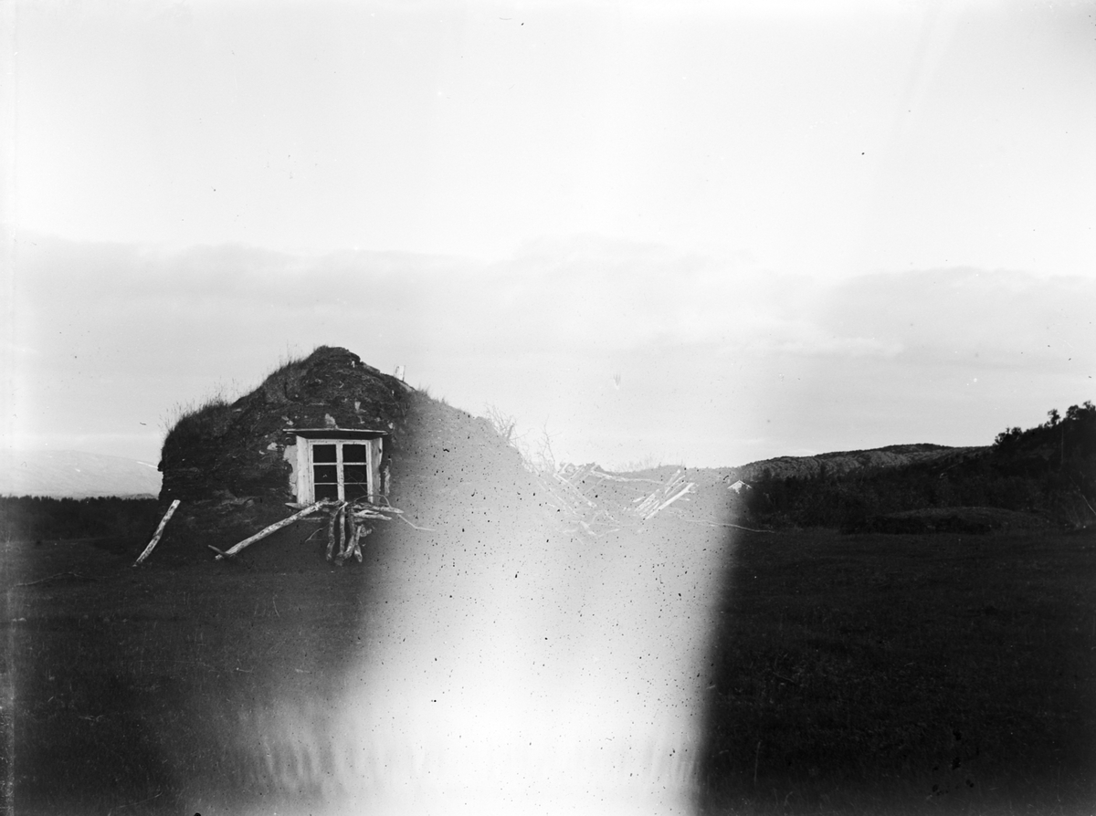 Fotografi från Spetsbergen. Motiv av hydda med fönster.