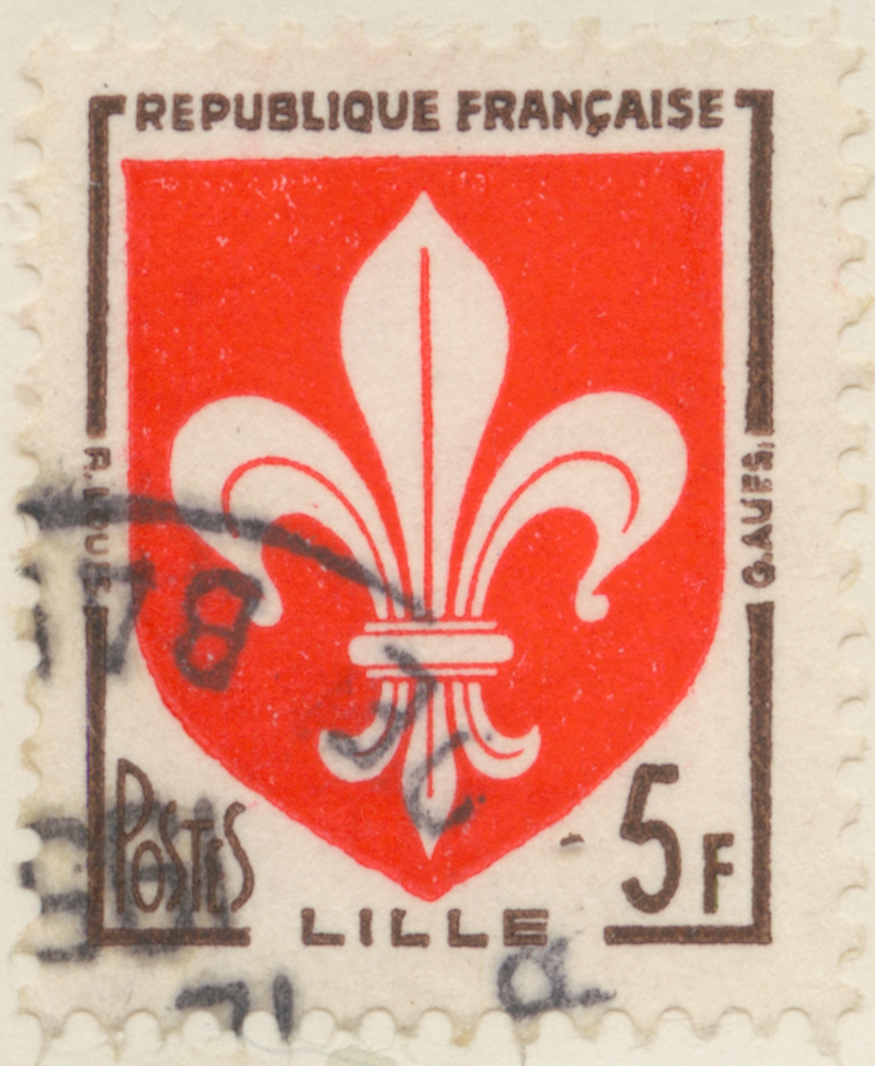 Frimärke från Frankrike, 1958. Motiv av Vapen: Staden Lille. "-Serie: franska provinsers vapen-"