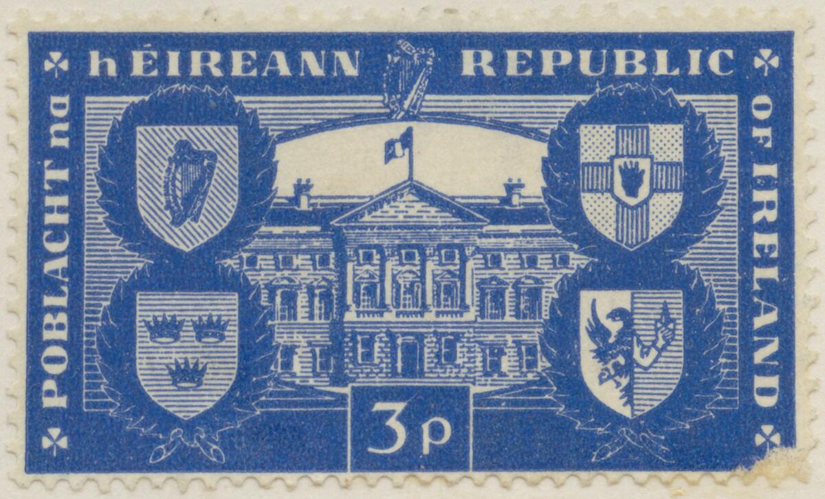 Frimärke från (Eire) Republiken Irland, 1949. Motiv av Irlands fyra provinsvapen