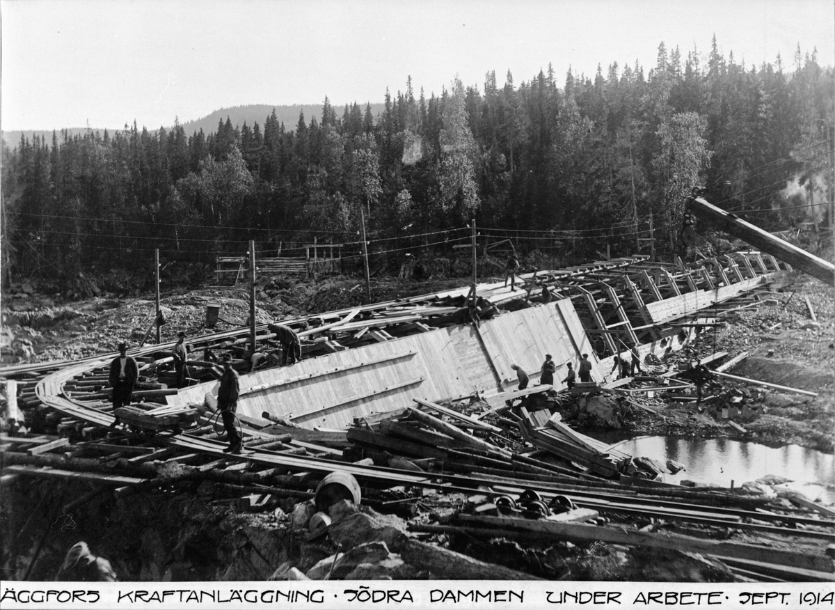 Titel: Byggherre: Byggnadsaktiebolaget Contractor, Stockholm. Södra dammen under arbete.