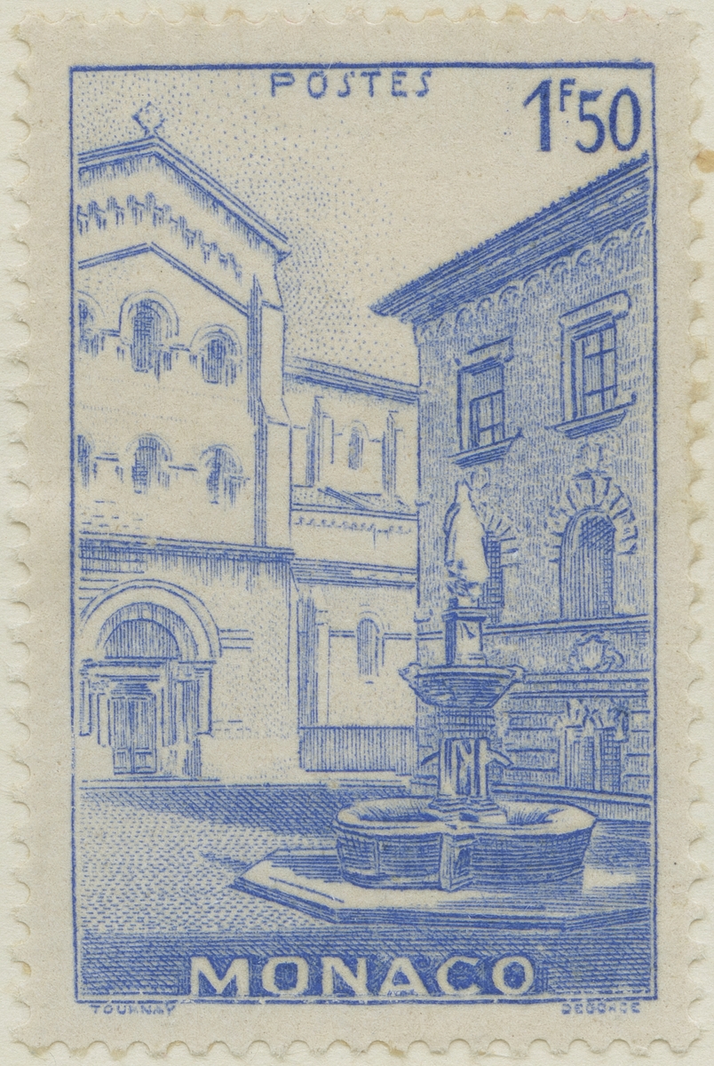 Frimärke från Monaco, 1938. Motiv av S:t Nicolaus Platsen
