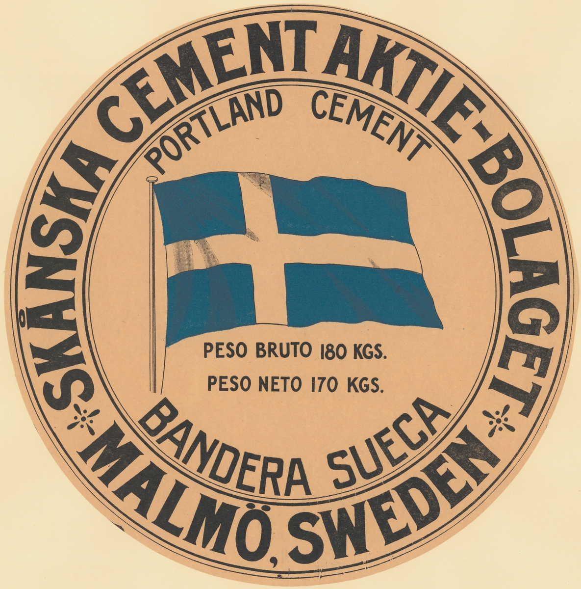 Fabriksmärke för cementpåsar. Skånska Cementaktiebolaget. Portland Cement.