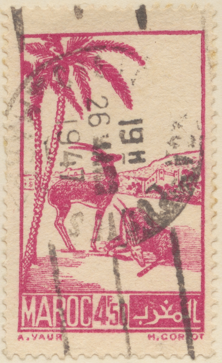 Frimärke från Franska Marocko, 1939. Motiv av Gazeller
