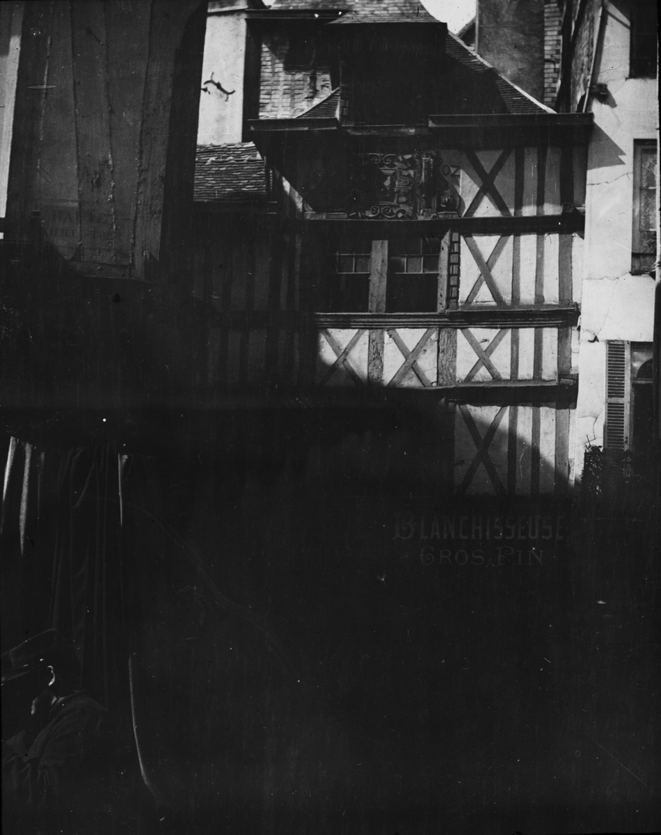 Skioptikonbild med motiv från gatan Rue des Halles i Rouen.