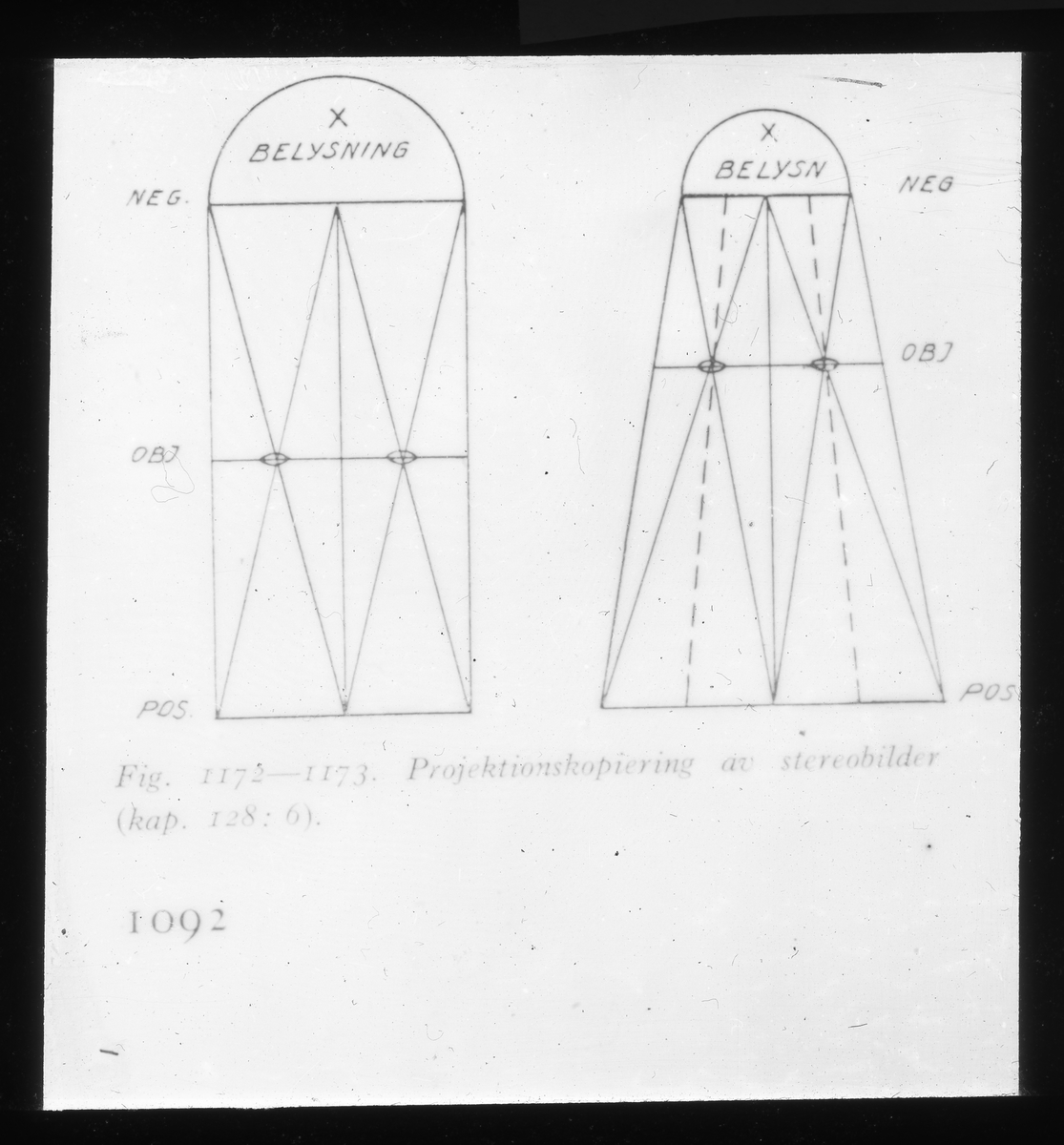 Skioptikonbild från Institutionen för fotografi vid Kungliga Tekniska Högskolan. Använd av professor Helmer Bäckström som föreläsningsmaterial. Bäckström var Sveriges första professor i fotografi vid Kungliga Tekniska Högskolan i Stockholm 1948-1958.