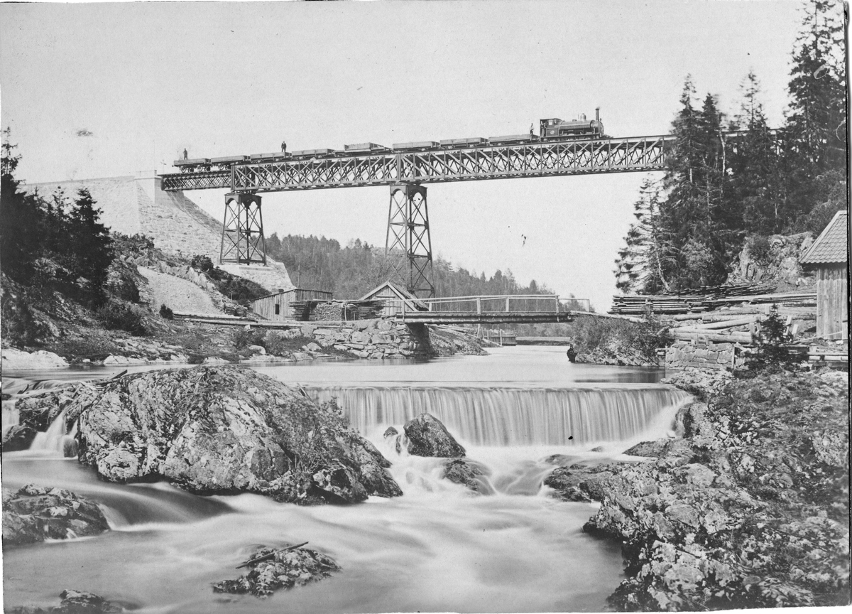 Järnvägsbro öve forsen vid Trollhättan, 1889.