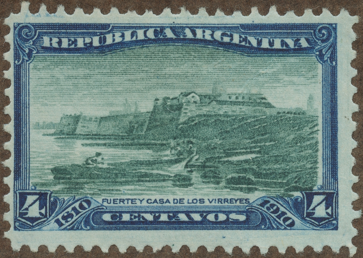 Frimärke från Argentina, 1910, Motiv av Fästningen och Viceregents residens -Buenos Aires- Republiken 100 år: 1810-1910.