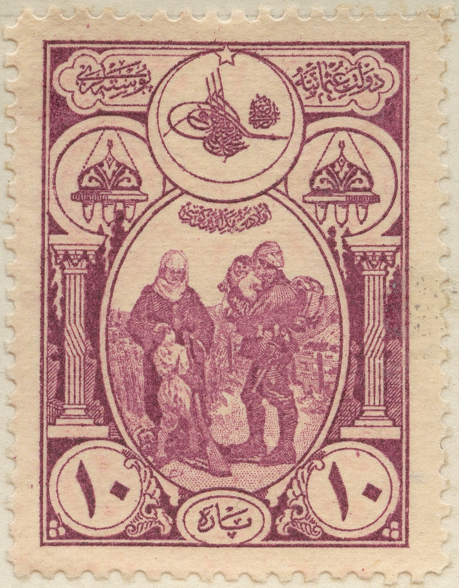 Frimärke från Turkiet, 1917. Motiv av Soldat tar avsked från familjen -Till förmån för föräldralösa krigsbarn