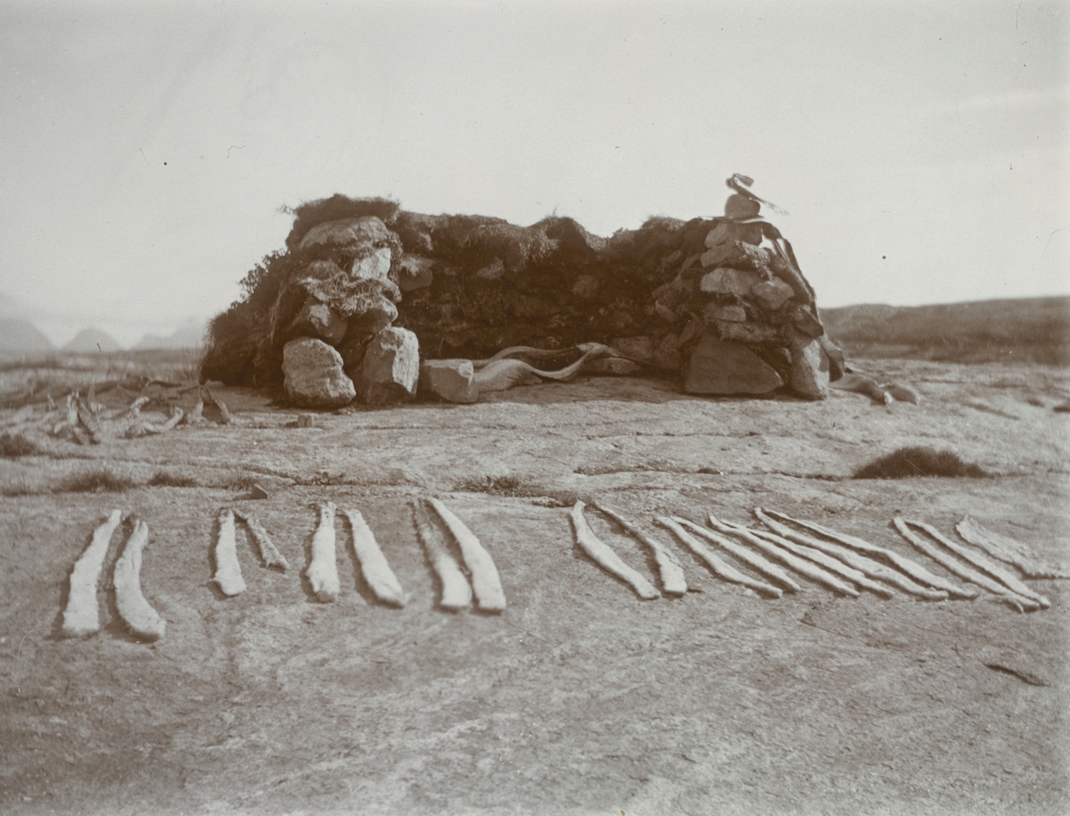 Fotografi från expedition till Grönland. Motiv av sälkött som torkar på en klippa.