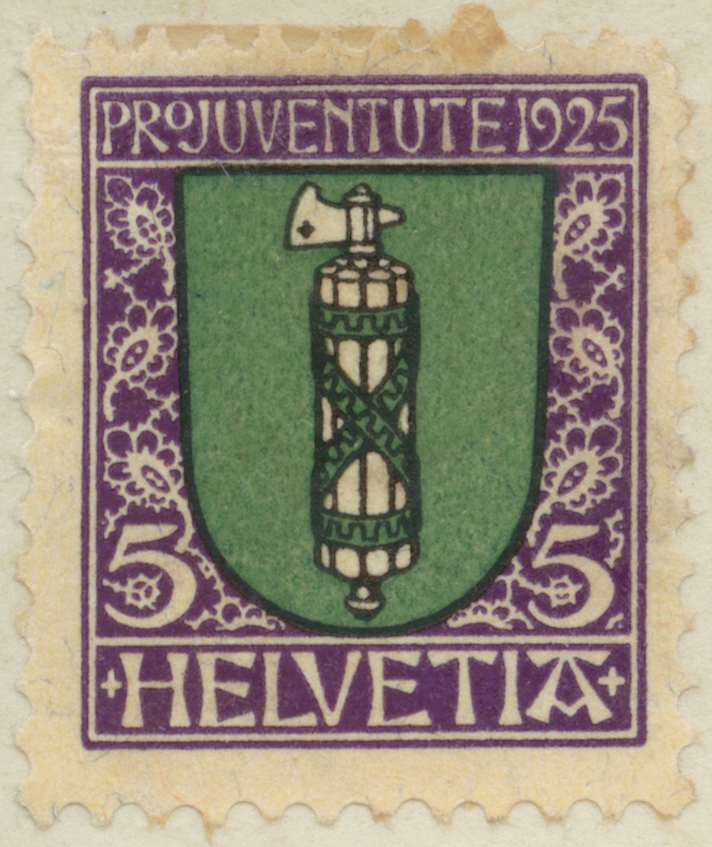 Frimärke från Schweiz, 1925. Motiv av S:t Gallens Vapen (Kanton) Pro Juventute 1925