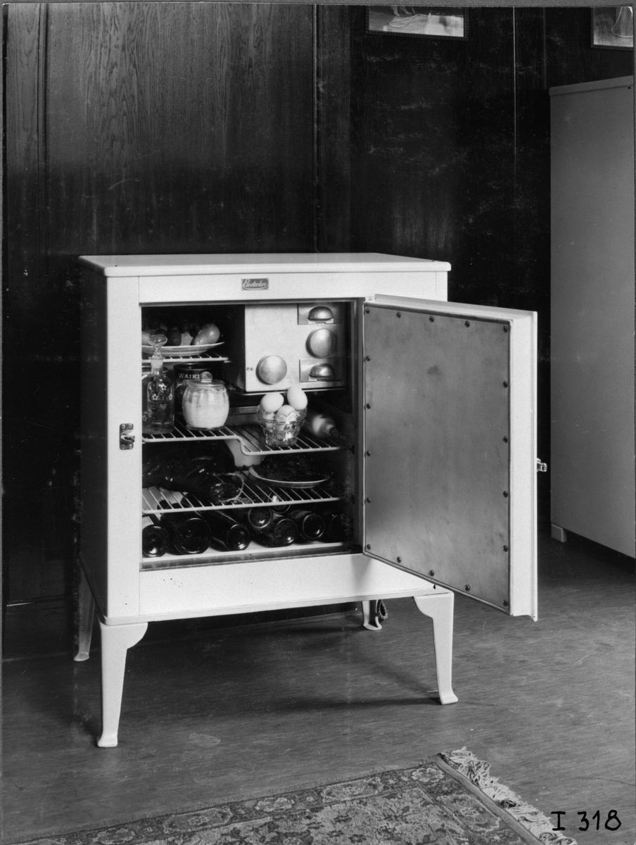 Elektrolux-Laboratoriet. Vitt D4-skåp. Elux utställningen, Stockholm.