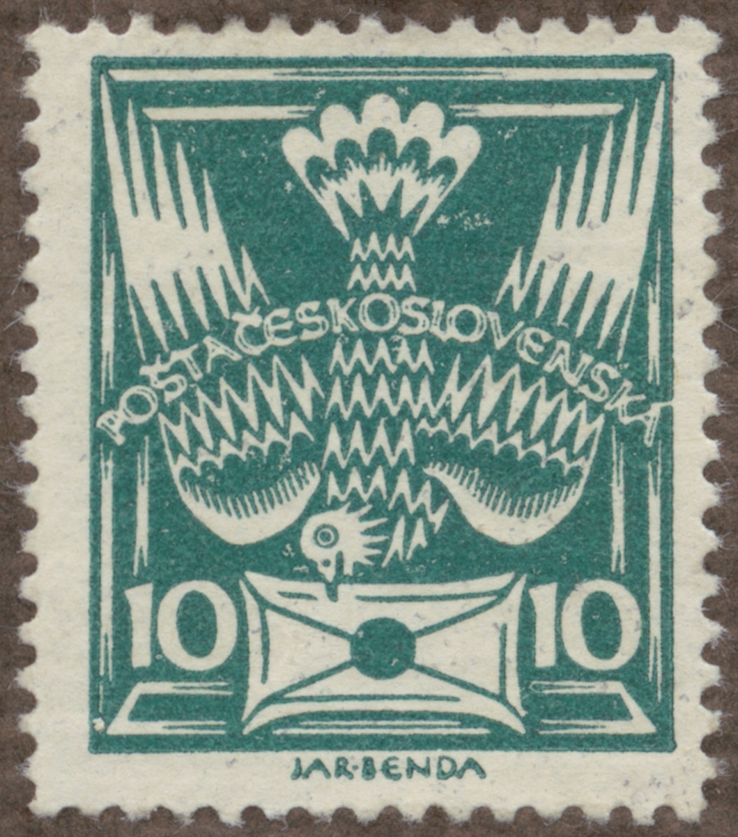 Frimärke från Tscheckoslovakiet, 1920. Motiv av postsymbol Duva med brev