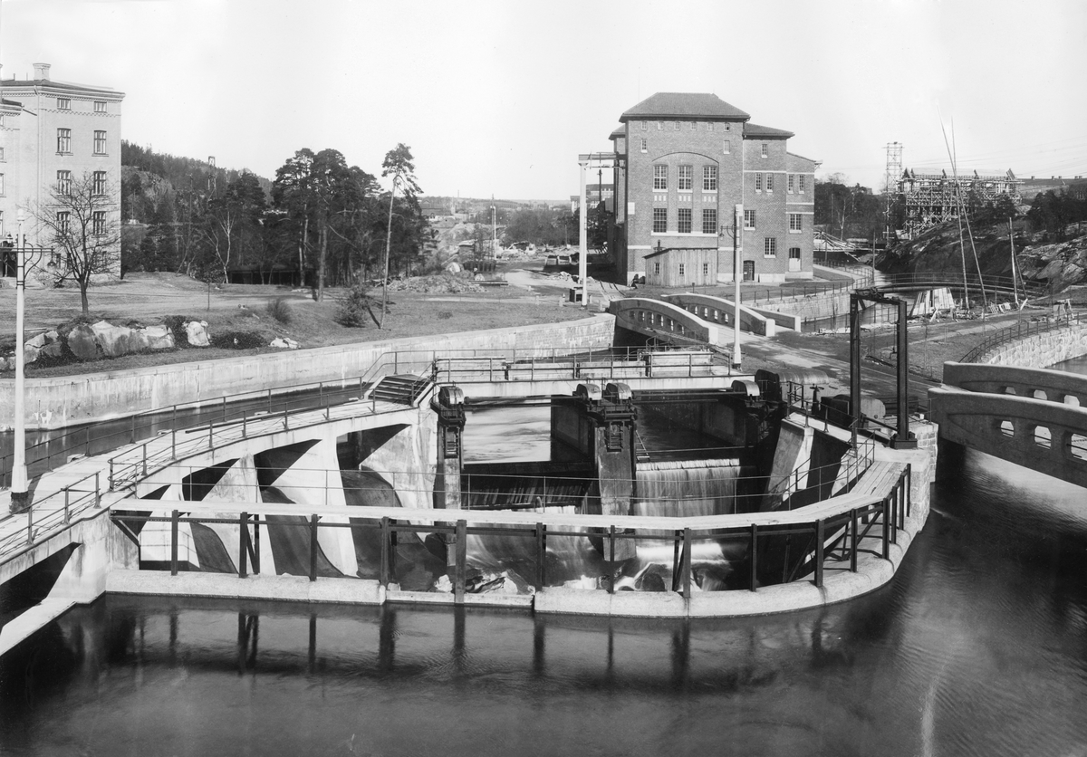 Trollhätte kraftverk. Byggnadstiden. Utskovsanordningar i fördelningsbassängen.