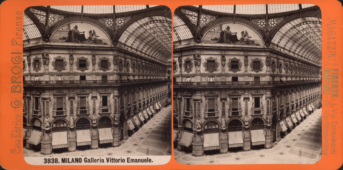 Stereobild, interiör Galleria Vittoria Emanuele II i Milano.