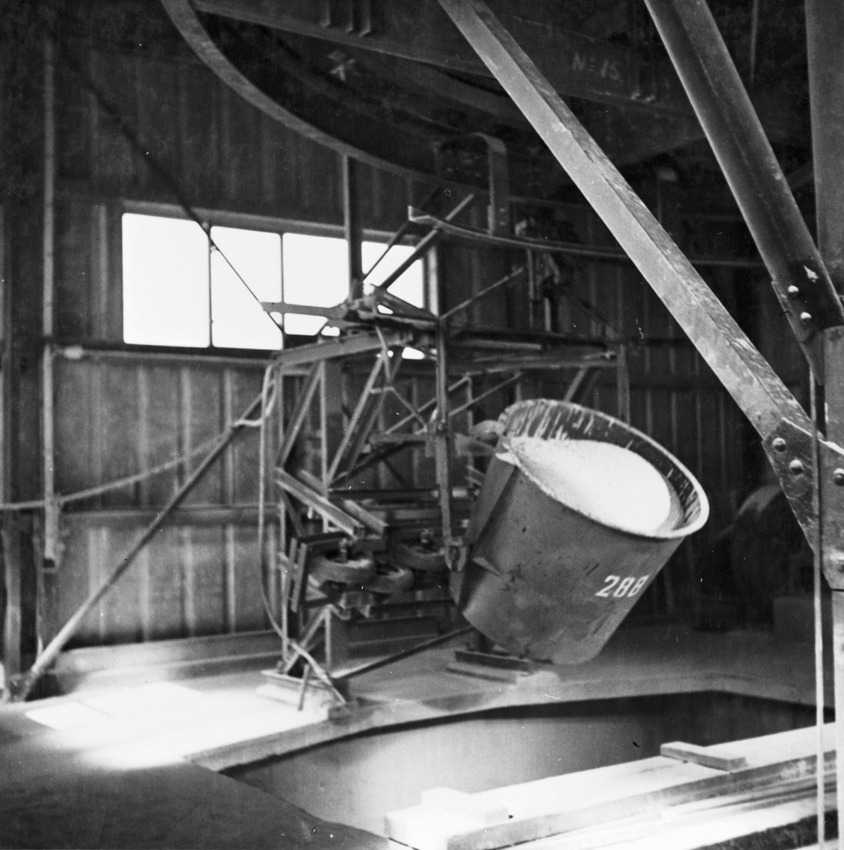 Linbanevagn vid tömning.