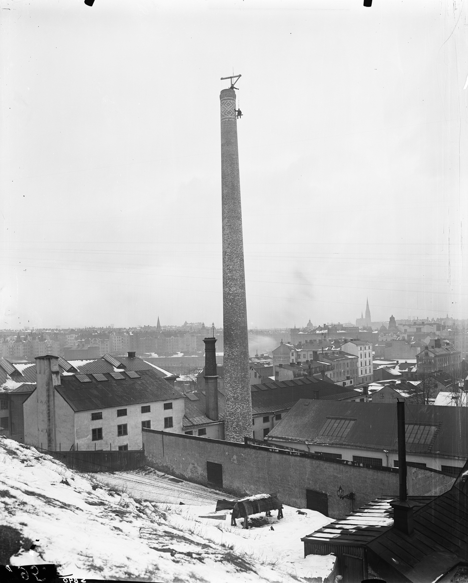 Vy över Bolinders verkstadsindustriområde. Lagning av skorsten.
