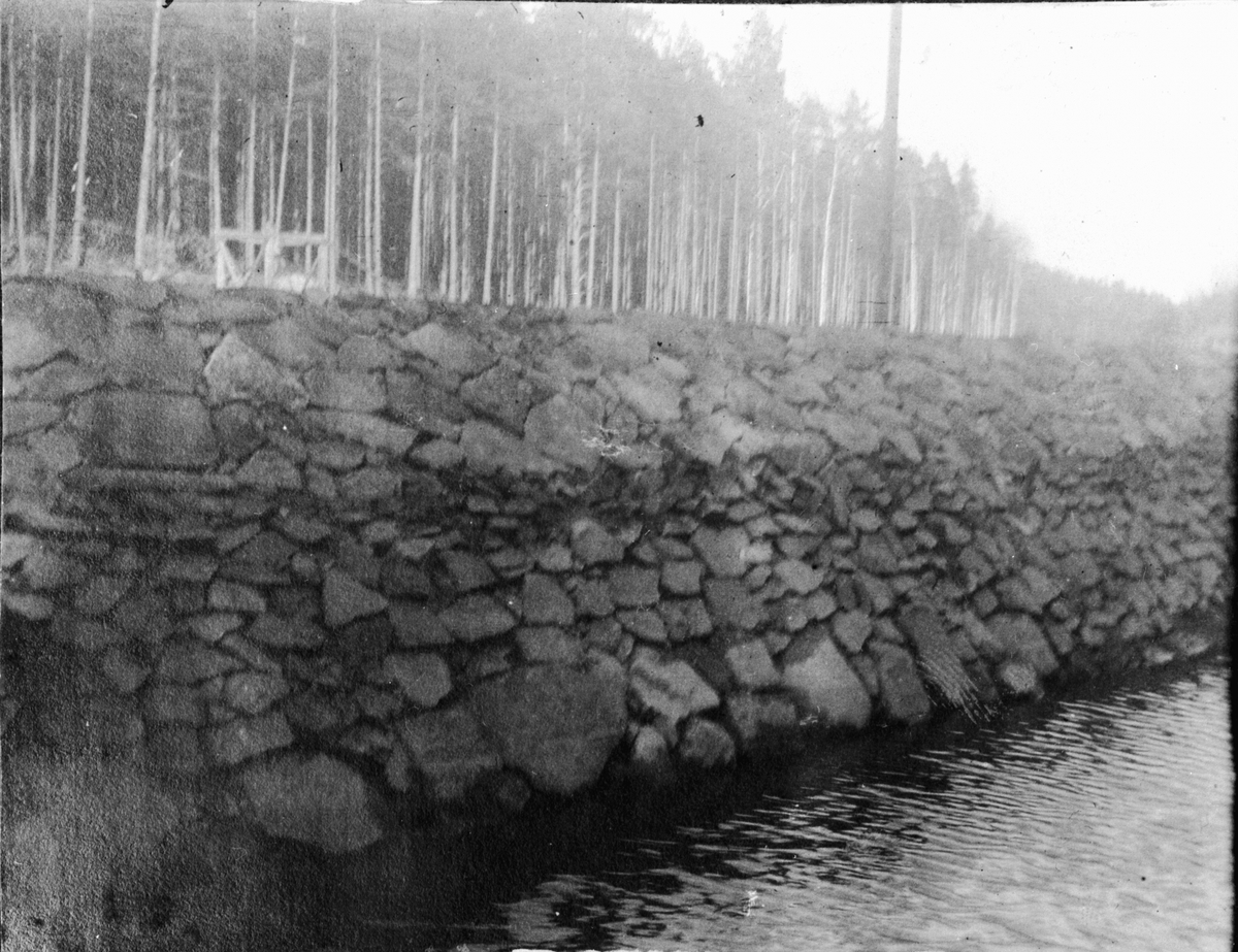 Byggherre: Byggnadsaktiebolaget Contractor, Stockholm. Glacismur mot Dalslands kanal.