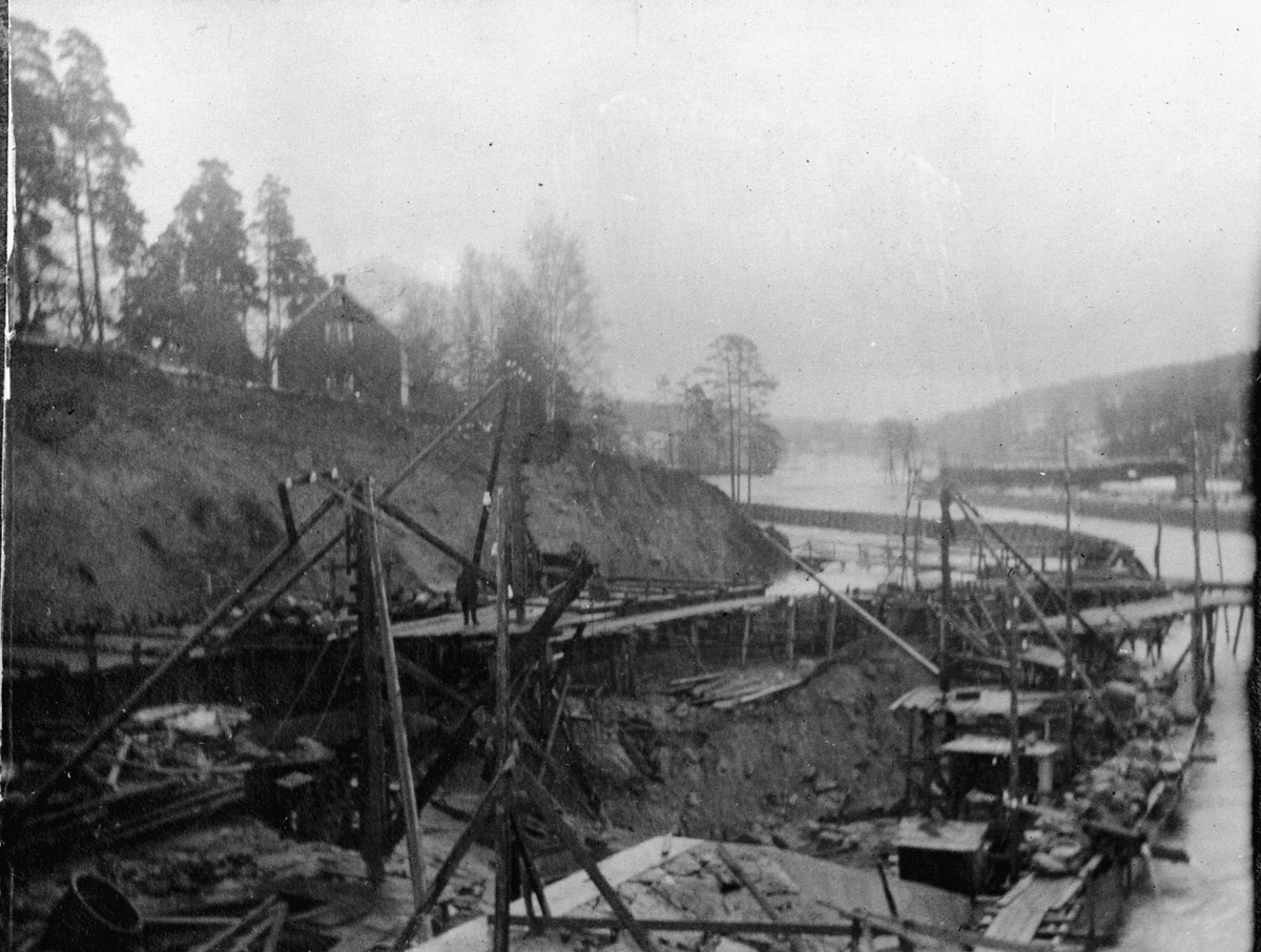 Titel: Byggherre: Byggnadsaktiebolaget Contractor, Stockholm. Avlopskanal med ledmurar.