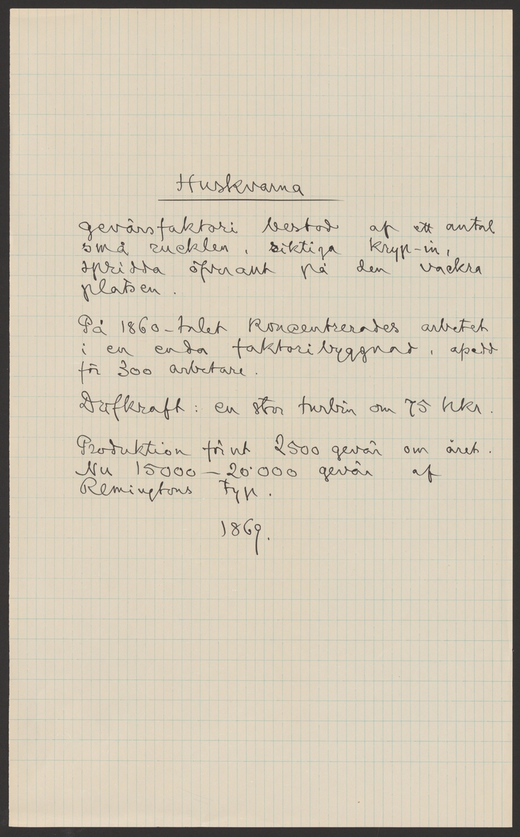 Titel: Husqvarna vapenfabriks kronologi. Ur Carl Sahlins bergshistoriska samling.