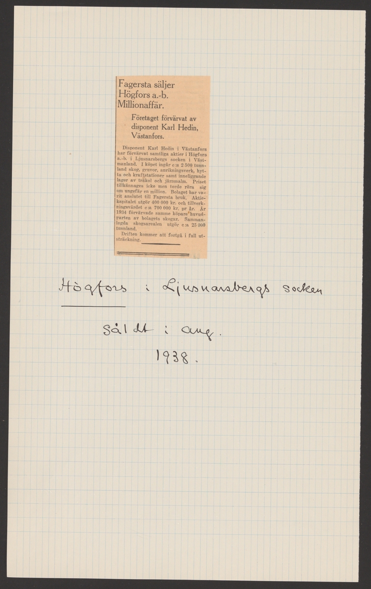 Högfors bruks kronologi.