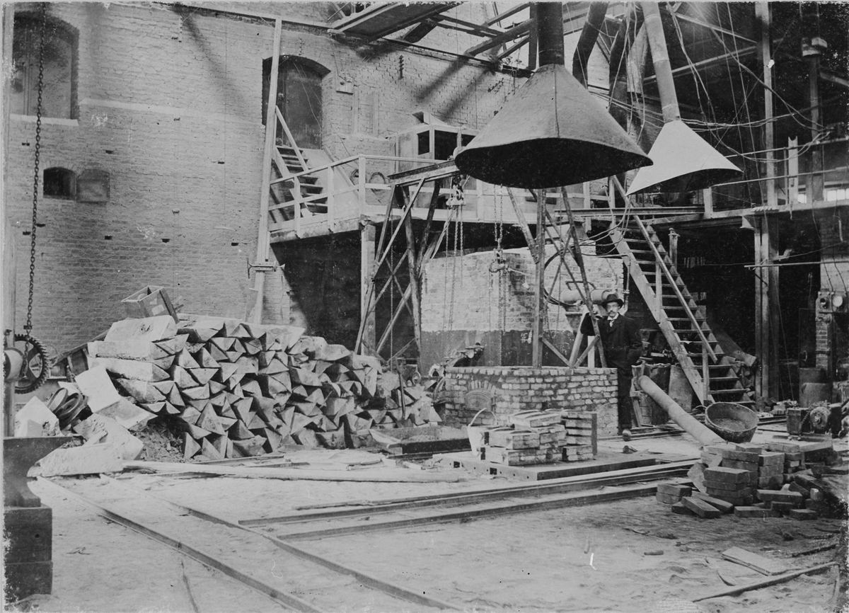 Interiörbild från Trollhättans Zinkverk med ing. Flodén.