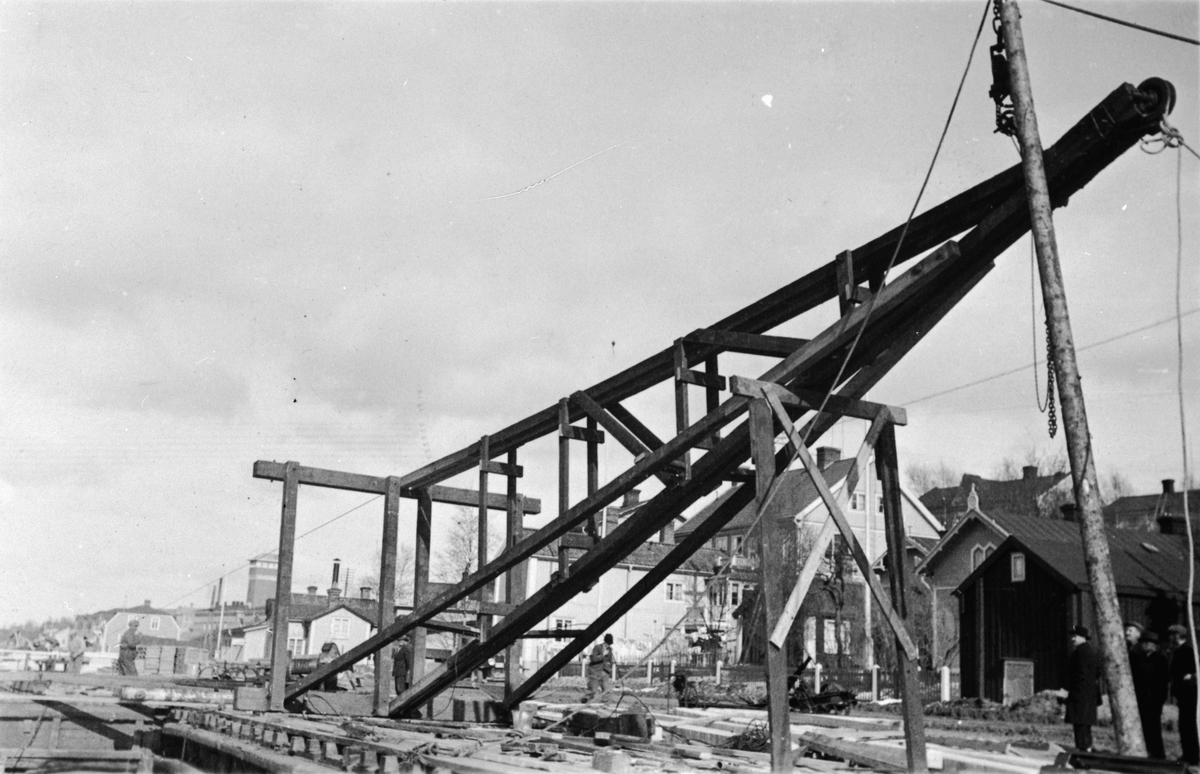 Titel: Byggherre: Byggnadsaktiebolaget Contractor, Stockholm. Pålar för att bygga Skeppsbrokajen.