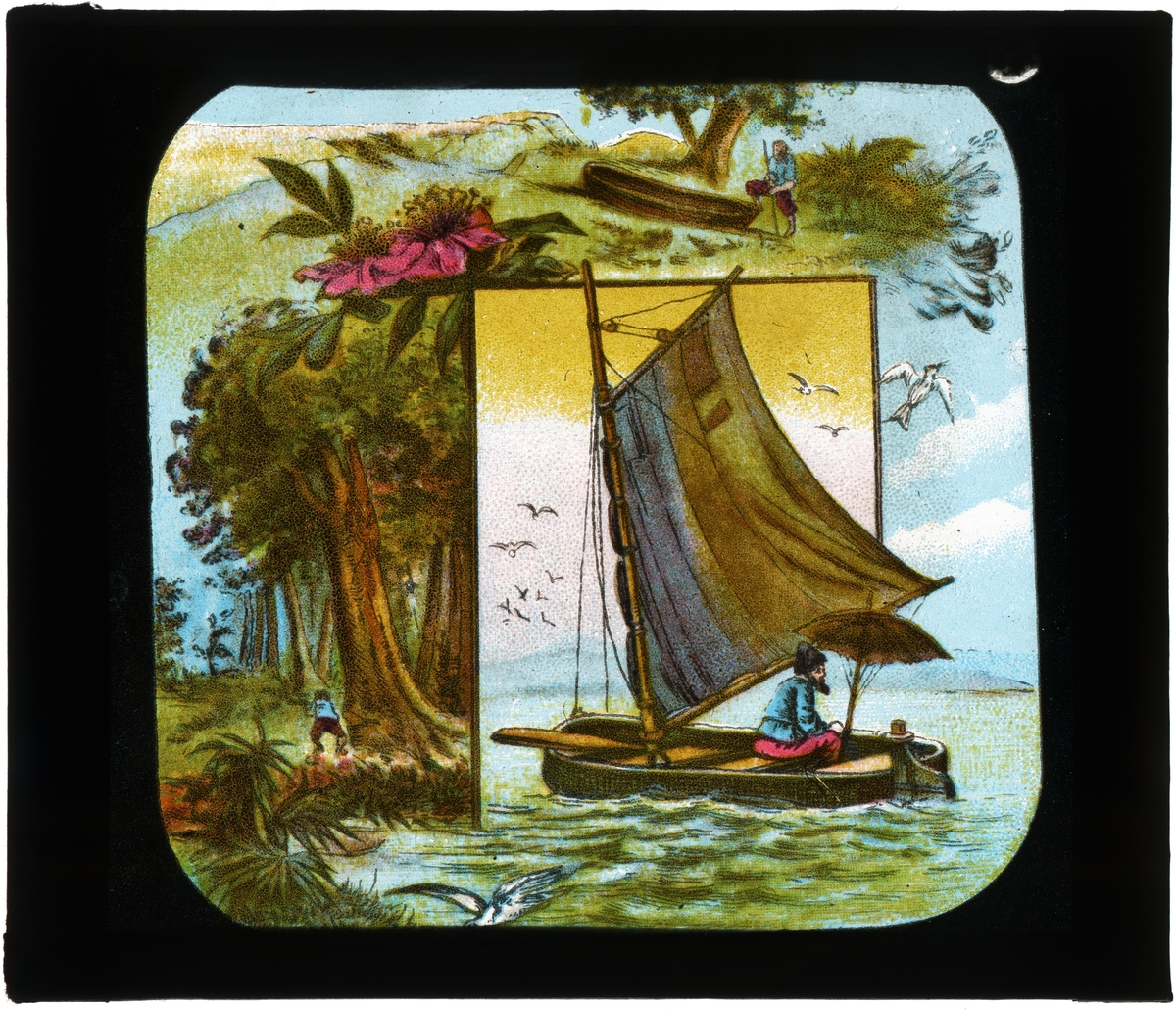 5. Robinson provar en båt han tillverkat för att kunna lämna ön.