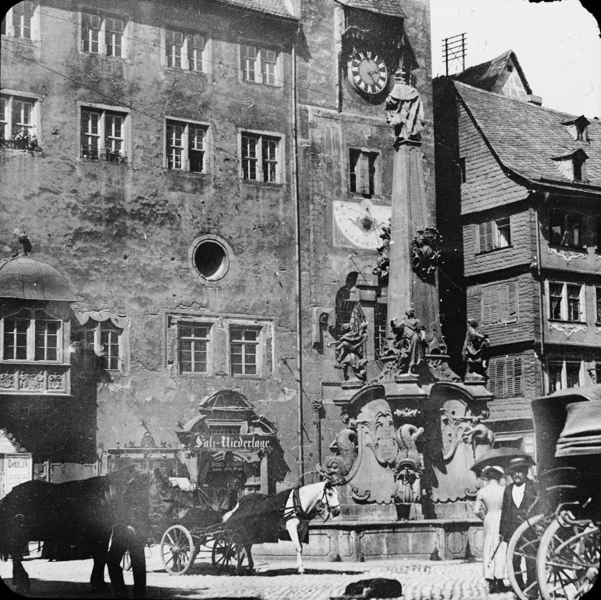 Skioptikonbild med motiv av fontän i Würtzburg.