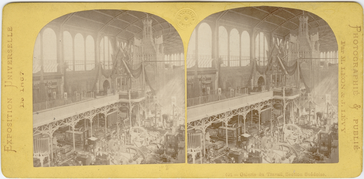 Stereobild med motiv av "Galerie du Travail" på Världsutställningen i Paris 1867.