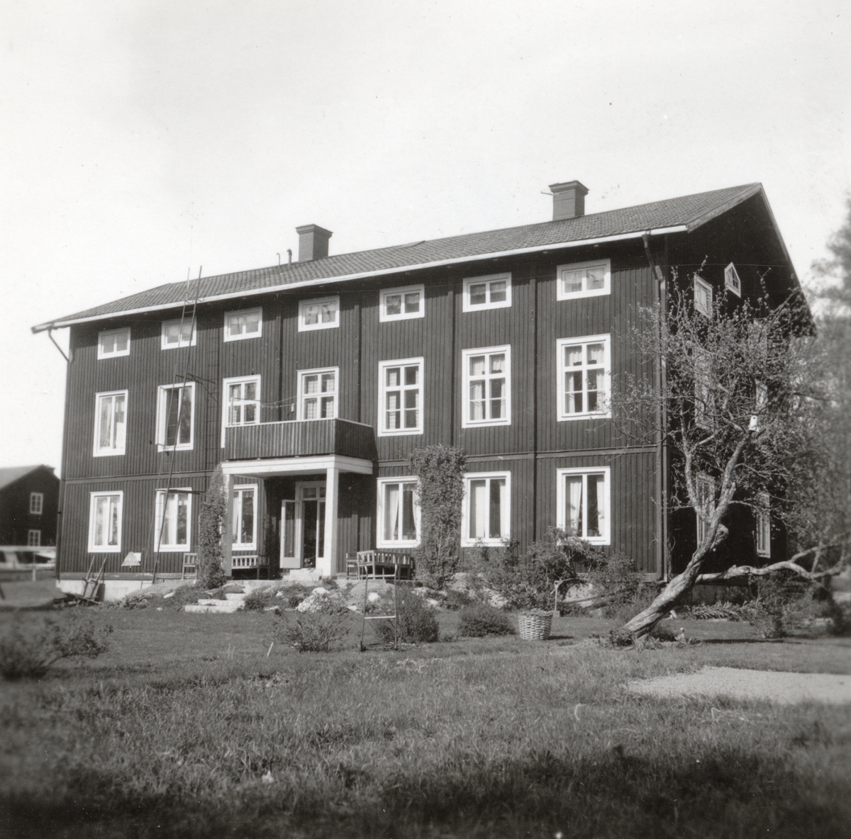 Verkstadsbyggnad vid Flors Linnefabrik, Hälsingland. Efter fabrikens nedläggning kom denna byggnad att bli prästgård i Mo socken.