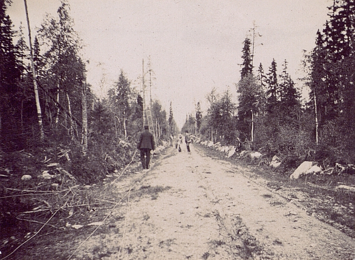 Telefonnät och naturmotiv från Norrland omkr.1900. Linjearbete.