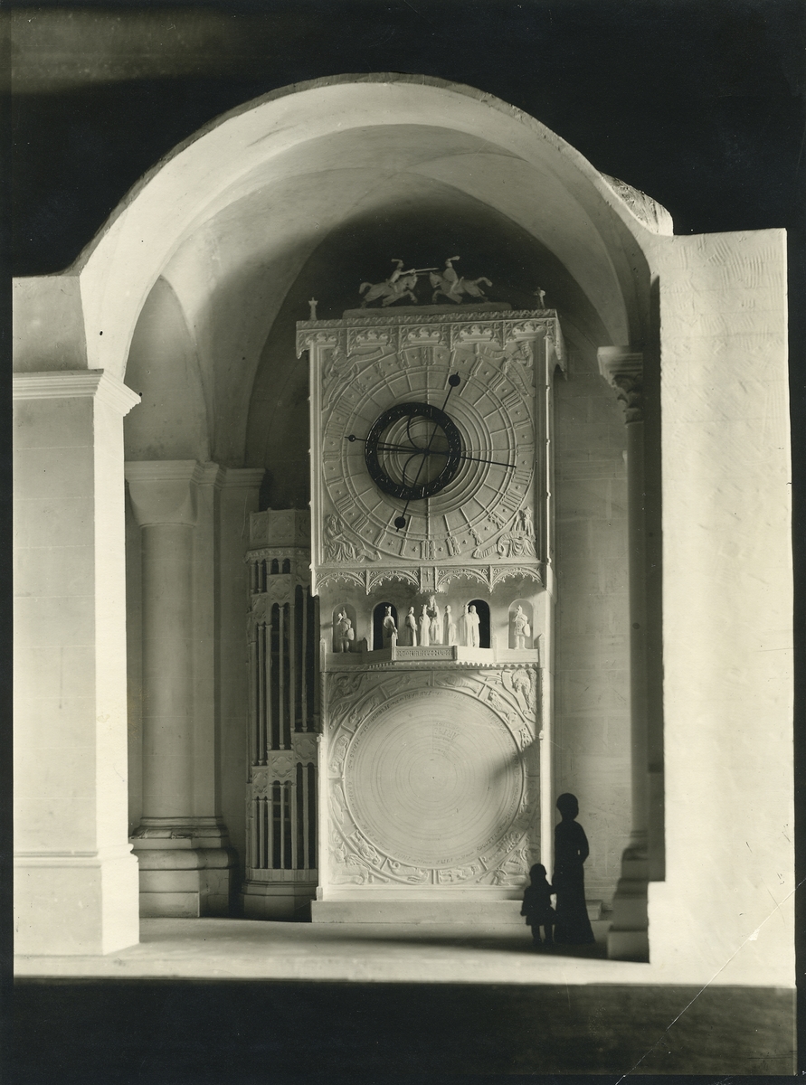 Domkyrkoarkitekt Th. Wåhlins gipsmodell av medeltidsuret i Lunds domkyrka. Modell i skala 1:10.