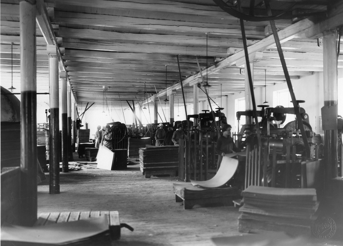 Träsliperi. Maskinsal för papptillverkningen. Nissaströms bruk