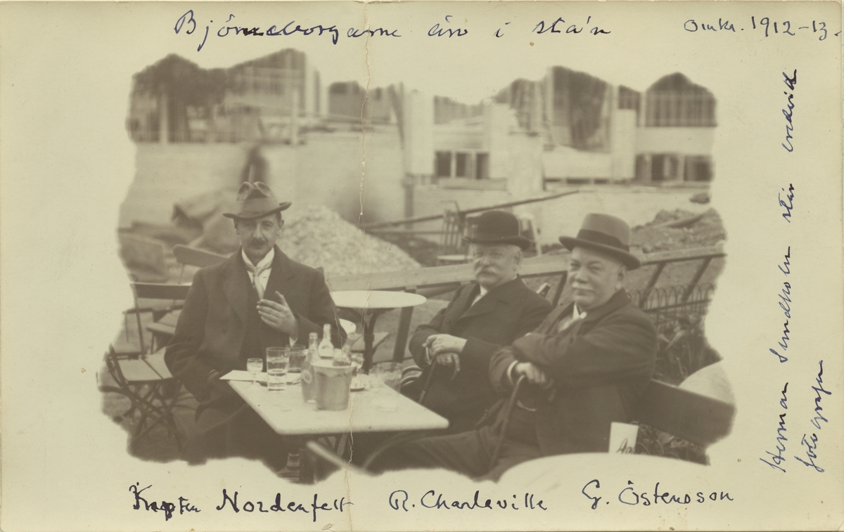 Disponent Kapten Henrik Nordenfelt, Hyttingenjör Reinh. Charleville och Ingenjör A.G. Östensson omkring 1912-1913.