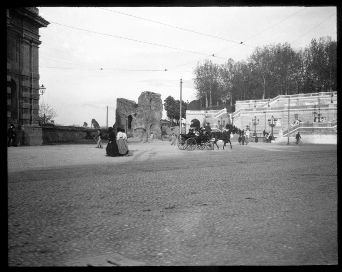 Skioptikonbild från institutionen för fotografi vid Kungliga Tekniska Högskolan. Motiv föreställande en amfiteater. Bilden är troligen tagen av John Hertzberg under en resa i Europa.