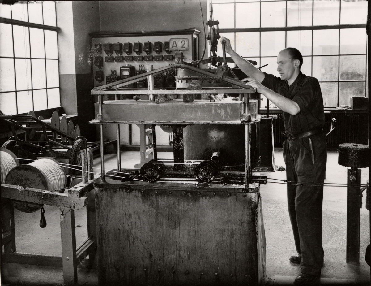 Nora Tändrörsfabrik. Impregneringsapparat i impregneringsavdelningen, 1948.